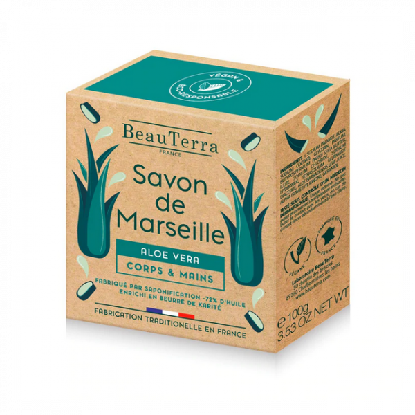 El Jabón Sólido de Marsella es un jabón en barra compuesto por un 72% de aceite vegetal y está enriquecido con manteca de karité. Está elaborado por un maestro jabonero según el ancestral proceso de saponificación. Cocido en caldero, es natural y sin conservantes. Con extractos de aloe vera.