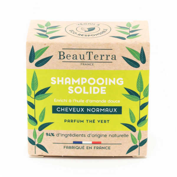 El Shampoo Sólido con Té Verde, es un shampoo en barra natural, órganico y vegano enriquecido con aceites de órigen vegetal como el aceite de almendras, indicado para cabellos normales para una mejor hidratación. Además de proporcionar una espuma cremosa, su fórmula natural sin sulfatos respetará tu cabello.