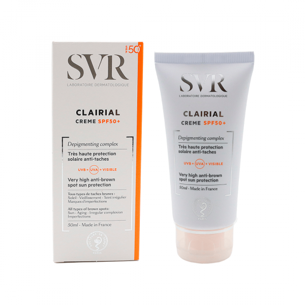 Ayuda a tu piel a luchar contra las manchas a la vez que se protege del sol, con SVR Clairial Creme SPF 50 tienes un beneficio extra anti manchas.